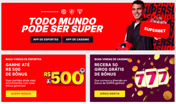 Você pode apostar nesses bilhetes utilizando o valor do bônus Superbet, que é de 100% até R$ 500,00 para a seção de apostas esportivas.