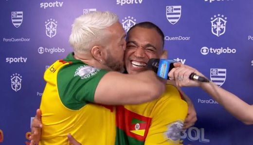 O Futebol Solidário em prol do Rio Grande do Sul, realizado neste domingo (26), proporcionou um dos encontros mais aguardados dos últimos anos. Pouco antes de a bola rolar no Maracanã, no Rio de Janeiro, o cantor Belo e o ex-jogador Denilson ‘Show’ entraram juntos no ‘Domingão com Huck’, programa da Rede Globo.