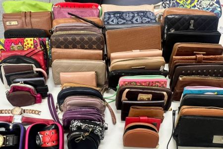 Durante o cumprimento da ordem judicial, com apoio da equipe da Polícia Civil em Uberlândia, 53 carteiras e bolsas de pequeno porte, além de relógios e outros objetos foram localizados e apreendidos.