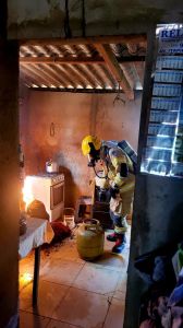 Ao chegarem, os militares encontraram o morador já fora do imóvel, que relatou ter acabado de substituir o botijão de gás e, ao tentar verificar um possível vazamento com a chama de um isqueiro, ocorreu uma pequena explosão seguida de fogo.
