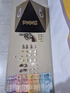 Ainda segundo a PM, vizinhos relataram que o suspeito costumava ir até uma área de mato próxima ao fim da rua. No local indicado, os militares encontraram uma lata enterrada contendo um revólver calibre .22, municiado com sete cartuchos intactos, além de porções de maconha e pedras de crack.