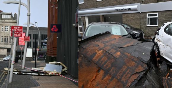 A tempestade Éowyn já deixou uma série de danos, com várias ruas interditadas por queda de telhados e postes. Vários carros estacionados nas ruas também foram danificados.