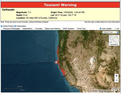 “O Alerta de Tsunami foi cancelado para as áreas costeiras da Califórnia e Oregon. Não há perigo de tsunami atualmente para esta área. Esta será a mensagem final do US National Tsunami Warning Center para este evento”, diz o comunicado.
