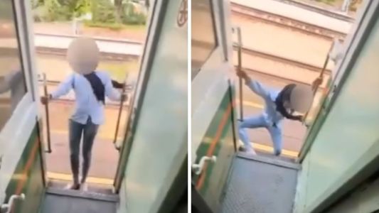 Mulher se inclina em trem para gravar vídeo para o TikTok e bate a cabeça em poste; veja vídeo