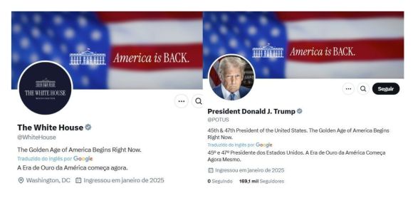 Após a posse do presidente dos Estados Unidos, Donald Trump, foram criados novos perfis no X, antigo Twitter. As novas contas oficiais da Casa Branca e presidência, reforçam o discurso do republicano sobre o início da 'Era de Ouro'.