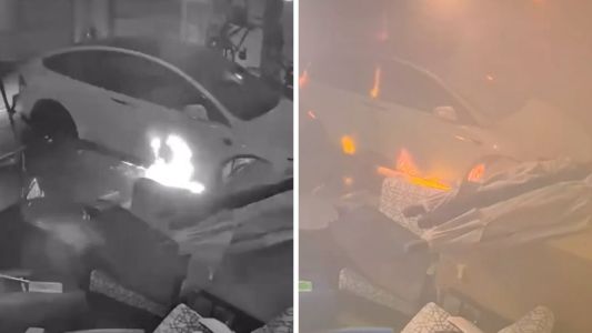 Imagens de câmeras de segurança flagraram o início do incêndio. O Governo do Condado de Pinellas foi quem compartilhou as imagens, junto com um alerta sobre carros elétricos após as chuvas.