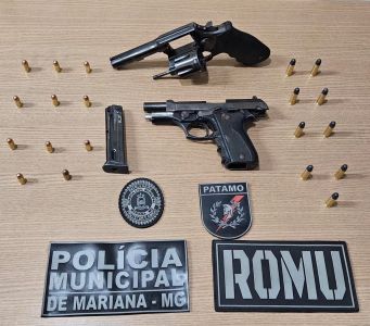 Duas armas de fogo, um revólver calibre .38 e uma pistola calibre .380 foram apreendidas