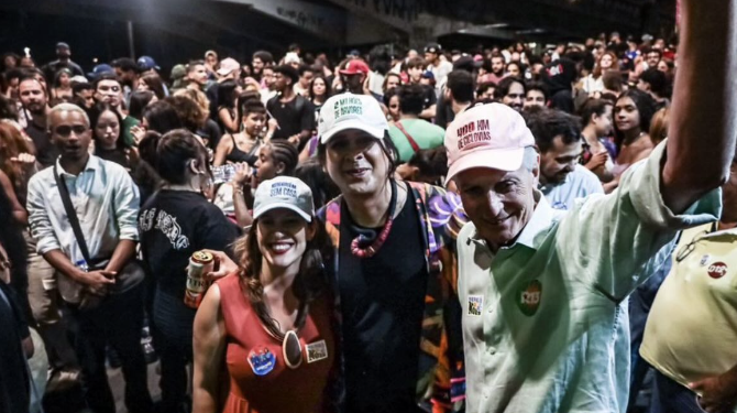 Na noite de quarta-feira (11), após o debate realizado na TV Alterosa, Duda Salabert (PDT) e Rogério Correia (PT) se encontraram e posaram para fotos no Viaduto Santa Tereza, região central de Belo Horizonte.