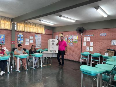 Esteve neste domingo (6) na Escola Municipal Elza Maria José Wilson (PSDB), um dos candidatos à Prefeitura de Vespasiano, na região metropolitana de Belo Horizonte.