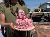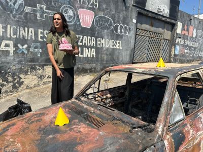 Nesta quinta-feira a candidata Duda Salabert (PDT) foi até o bairro Glória, região noroeste de Belo Horizonte, cantar “parabéns” para um carro abandonado na rua Martim Afonso de Souza. A deputada levou um bolo de aniversário com o rosto do prefeito Fuad Noman (PSD).