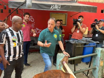 Durante a agenda, o candidato, que estava acompanhado do ex-prefeito Alexandre Kalil, falou rapidamente com a imprensa.
