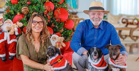 Lula posta foto ao lado de Janja e cachorros com mensagem de Natal; confira