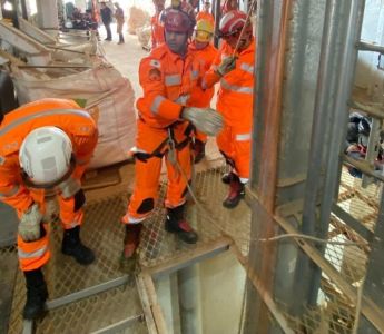 Bombeiros resgatam trabalhador que caiu em fosso de elevador de grãos