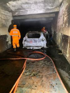 A equipe de bombeiros realizou o combate direto ao fogo e o rescaldo da área. A ação rápida dos militares impediu que o incêndio atingisse outros dois veículos que também estavam na garagem e evitou que as chamas se espalhassem pelo restante da estrutura da residência.