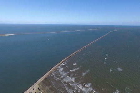 Um dos pontos mais emblemáticos da praia são os Molhes da Barra, estrutura formada por grandes blocos de pedra que avançam pelo oceano e facilitam a navegação até a Lagoa dos Patos.